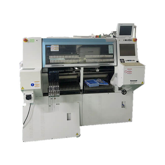 PANASONIC BM123 is a high performance PC board assembly and manufacturing equipment designed for the high speed automated production of printed circuit board assemblies. The system has been developed for high-volume, high-mix production of medium-to-large sized PC boards with a wide variety of component types. The unit can handle up to 400 components for the simultaneous assembly of complex and fine-pitch components onto printed circuit boards. BM123 is made up of several key components including a feeder unit, an indexing machine, an intelligent vision tool, a laser measuring asset and an intelligent table controller. The feeder unit can feed both
