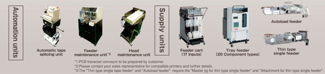 | IPC9850 | 63,300 CPH (1608C) *3 | 59,200 CPH (1608C) *3 | 8,300 CPH (208 QFP) *3 | 30,000 CPH (1608C) *3 | |
