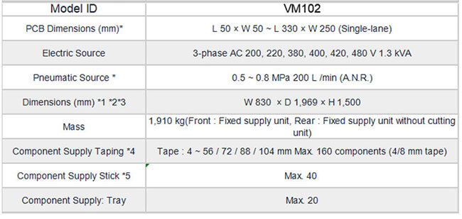 The VM102 is based on the AM100 platform, but in a more compact form, leveraging the vaunted 14NH & up to four 20 slot feeder carts/160 8mm inputs, with an output of 32,100 CPH, accuracy of 30um in a 1.52m long / 3.14m footprint