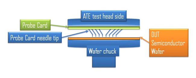 By way of simplification, during the fabrication of a silicon wafer, some integrated circuits are placed on a semiconductor wafer. The wafer is then diced and packaged. Before cutting, the circuit needs to be tested. This electrical test is carried out with the help of a probe card.