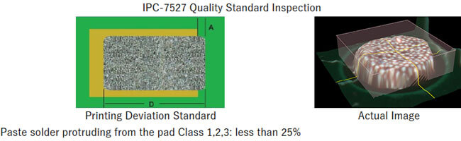 Positional deviation of pad size is inspected based on the IPC-7527 quality standard for measurement allowances.
