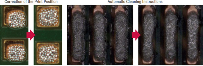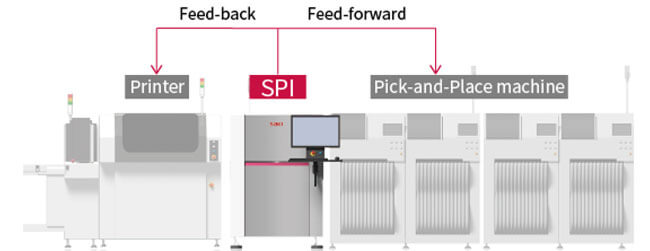 The accuracy of solder printing is improved thanks to feeding back solder printing position misalignment data from the SPI to the solder printing machine. Additionally, metal mask cleaning instructions are automatically communicated to prevent solder printing defects.