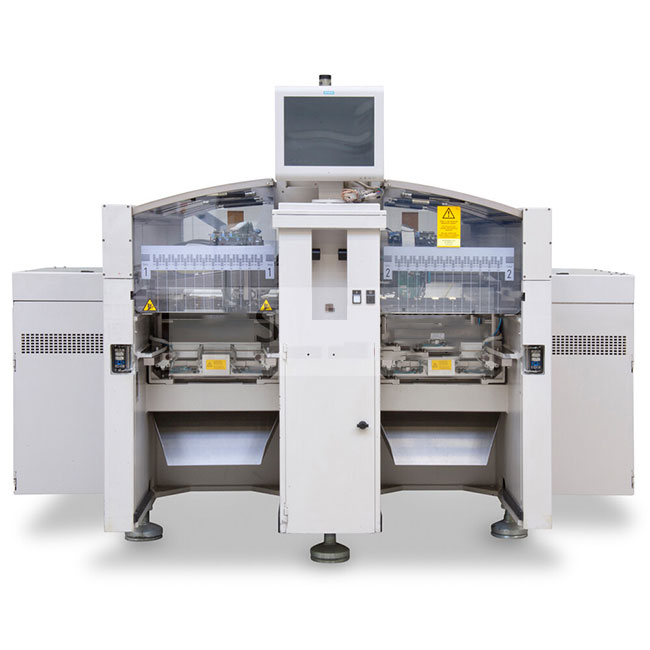 Siemens HS50 SMT machine is equipped with 4 XY main cantilevers. Each rack has a star-shaped 12-nozzle pick-and-place head. The placement head takes turns to pick up parts from the fixed feeder and place them on the fixed PCB board. Its features are as follows: