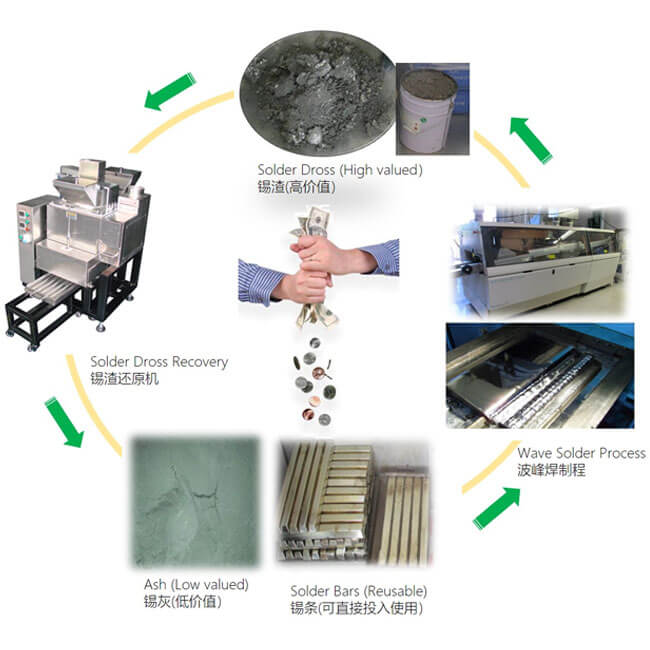 Solder bar usage saves at least 50%, the alloys separation rate is up to 98%, economic design with a small footprint and easy to transport; offline operation without dust, High recovery ration, high capacity.