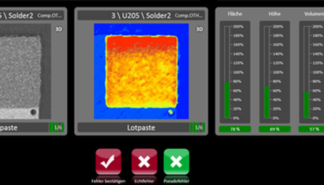 Viscom’s powerful SPI system inspects solder paste application in SMD production with maximum speed and precision. 3D features, such as volume, height, and shape as well as surface area, displacement, and smearing are accurately examined. The 3D inline system demonstrates decades of Viscom's experience in reliable, high-throughput solder paste inspection. The latest sensor technology with an orthogonal camera and four lateral views results in the highest inspection quality. Realistic color images ensure quick and clear verification. The FastFlow handling guarantees an extremely high throughput thanks to synchronous in- and outfeed of the assemblies. The system can achieve minimal handling times with minimal mechanical impact loads. Intelligent networking in the SMT line enhances process stability and efficiency.