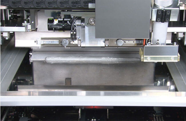 Stabilizes the rolling diameter of solder paste that affects print quality. A newly developed 12oz syringe type PSC system realizes non-stop production for a long time.