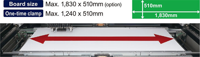 | Board size(with buffer unused) | Min. L50 x W30mm to Max. L1,330 x W510mm (Standard L955) | Min. L50 x W30mm to Max. L1,830 x W510mm (Standard L1,455) |