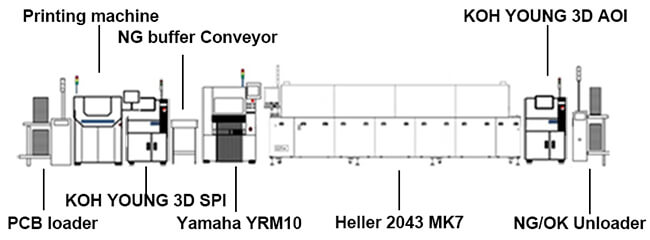 The industry’s fastest full 3D measuring inspection solution- Solves shadow problems by utilizing 2-way projection- Full 3D foreign material inspection for the entire PCB- Provides accurate inspection data with real-time PCB warp compensation·Full 3D data-based process optimization solution: Realization of industry 4.0 / smart factory- Realizes real-time process optimization through powerful SPC analytics- Provides a powerful printing process optimization tool·Leading model for high-speed mass production line