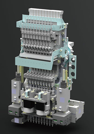 By adopting a new-generation servo system from upper-ranked models and utilizing a lightweight and compact universal type head we have speeded up mounting more than 25% compared to conventional models to achieve the world’s fastest mounting speed in its class of 46,000 CPH (chips per hour).