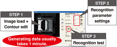 Prevents pickup and recognition errors by applying a function (smart recognition) that does easy data generation for parts having complex shapes and also a recognition data auto-generator & tracking function. (es-Vision)