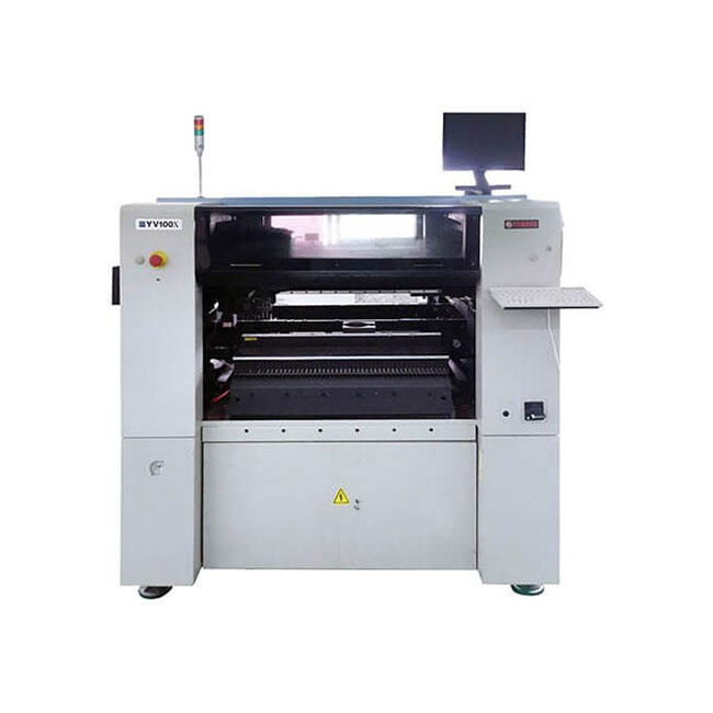 Yamaha YV100X placement machine is using the latest Yamaha latest closed-loop technology and dual drive technology. Yamaha YV100X Multi-functional placement machine is using DOS operating system. This SMT mounting machine is equipped with a working head, 8 nozzles, 2 high-resolution multi-vision digital camera, optional with YAMAHA patented flight for the first move, Components from 0201 (British) micro-components to 32mm chip SMD components, including IC, QFP, SOT, SOP, SOJ, PLCC, BGA, and other components such as connectors can be mounted using Yamaha YV100X SMT Machine. Yamaha YV100X Mechanical structure is simple,a casting frame made to ensure durability and stability, the circuit control is not complicated, and designed for easy maintenance. The menu is relatively simple, easy to operate, can be easily modified stickers 1.2 m long LED light board. Yamaha YV100X YV100X mid- speed multi-function placement machine is suitable for small and medium batch production and with high-speed placement output.