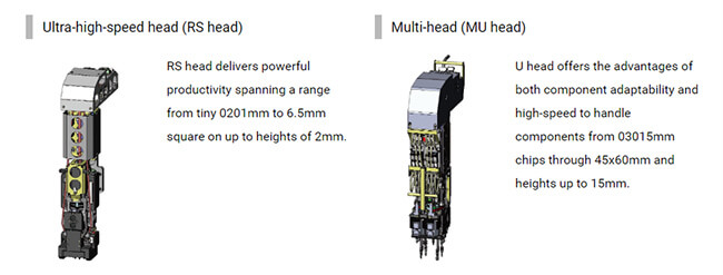 Delivers revolutionary productivity by employing our unique simultaneous component pickup technology, newly developed rotary control technology, and heads are lighter than previous high-speed heads.