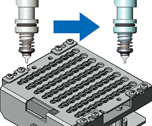 Nozzle station (ANC) is changeable to match the head. Also handles nozzle free layouts for high-speed head compatibility.