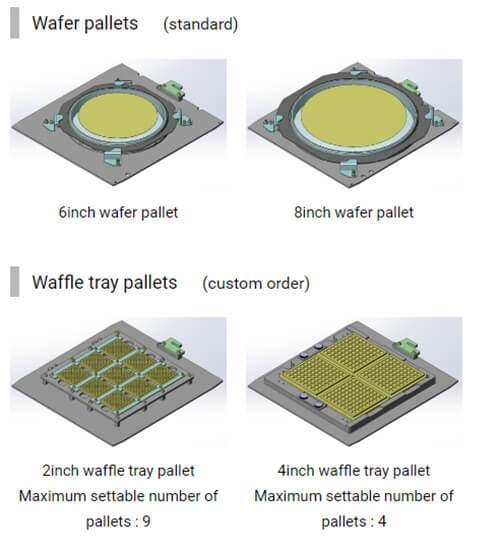 6 to 8 inch wafers, 2 to 4 inch waffle trays
