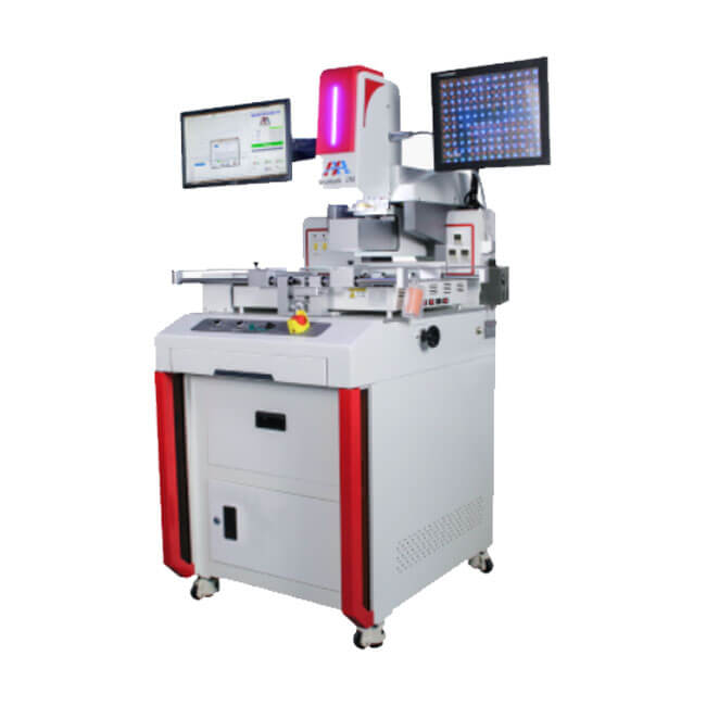 Imported HD CCD (2M pixels) optical alignment system, through the PC control system X/Y automatically move the optical lens alignment, using 15" HD industrial display (1080P 16:9) and 18.5" SD display operation. Equipped with automatic feeding device to realize feeding and receiving automatically.