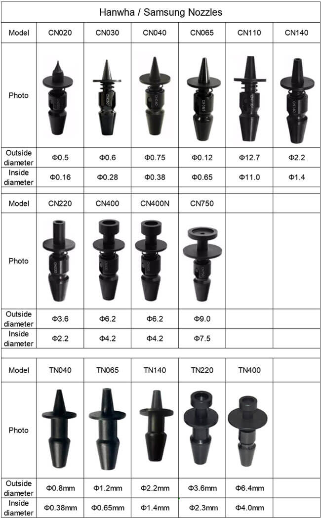 | SMT CP20/40 SAMSUNG NOZZLE | |
